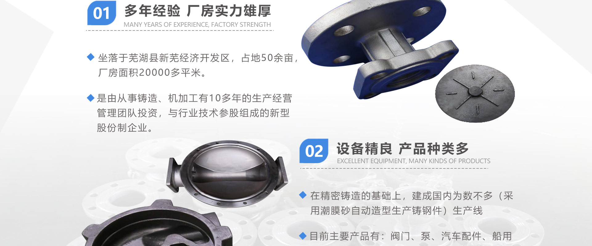 安徽偉工機(jī)械科技有限公司,坐落于安徽蕪湖新蕪經(jīng)濟(jì)開(kāi)發(fā)區(qū),是一家専業(yè)從事鑄造產(chǎn)品設(shè)計(jì)、研發(fā)、生產(chǎn)、銷售于一體的企業(yè),公司為客戶的產(chǎn)品提供多樣的技術(shù)支持與設(shè)計(jì),公司主要鑄造技術(shù)有潮模砂鑄造、硅溶膠精鑄工藝。主要產(chǎn)品有:不銹鋼閥門(mén)配件、泵閥配件、汽車配件、工業(yè)管道配件、工程機(jī)械配件、汽車配件等。材質(zhì)為:低合金鋼、304、316、316L、鉻鉬鋼、哈氏合金、碳鋼、雙相鋼等。公司已先后通過(guò)ISO9001和TS16949等多種體系審核,以完備的管理手段和齊全的檢測(cè)設(shè)備滿足客戶需求,進(jìn)的設(shè)備,専業(yè)的技術(shù),嚴(yán)謹(jǐn)?shù)墓芾?,穩(wěn)定的質(zhì)量。服務(wù)客戶,鑄造未來(lái),偉工誠(chéng)摯的歡迎新老客戶共同商洽合作